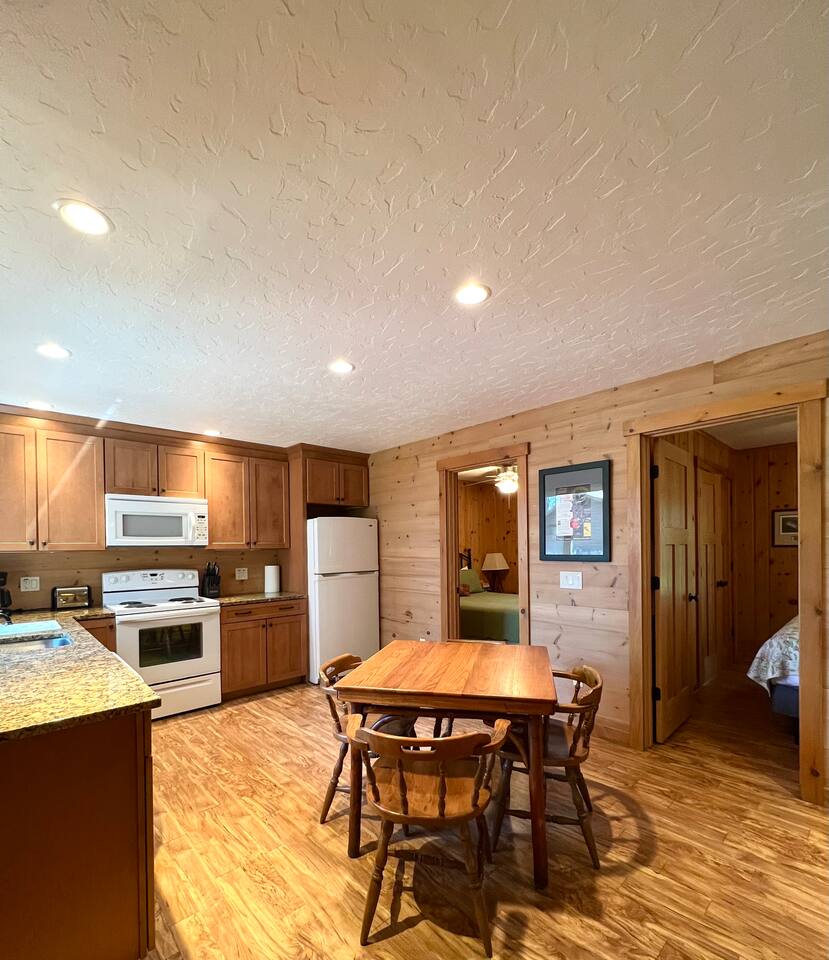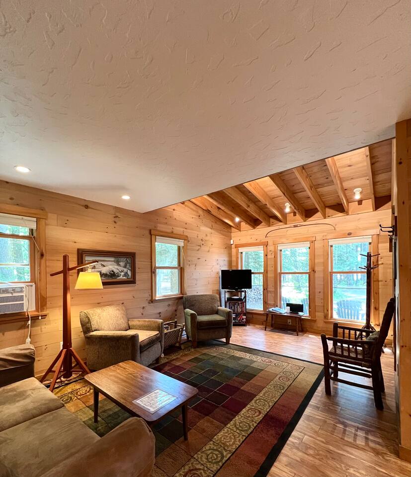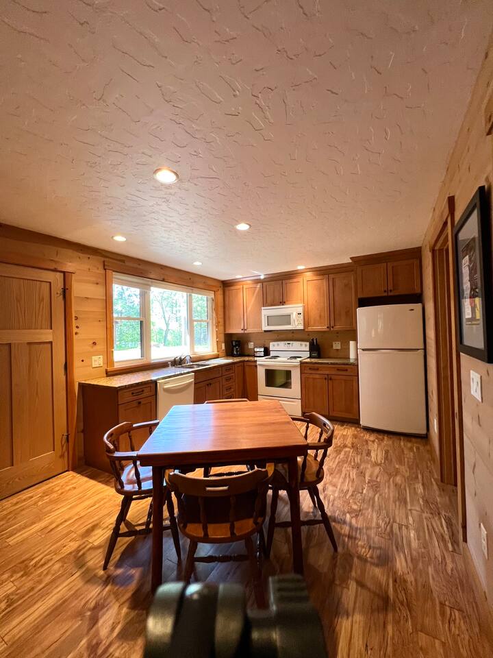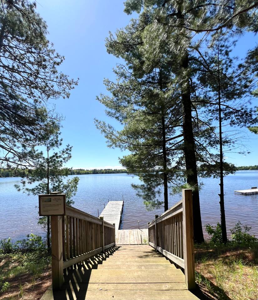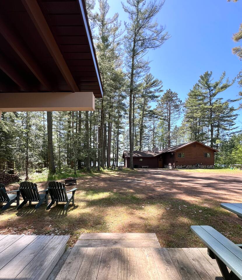 INSIDE As you enter, there is a living space with a couch, chairs, TV, and tall windows showcasing the lake outside. Next to the living room, is the full kitchen and dining space. Just off the kitchen and living area are the 2 bedrooms and a full bathroom. OUTSIDE You will find a private dock, fishing boat, firepit, and various canoes, kayaks, etc. You will also find 4 bikes available for your use as well. And if you are looking for some adventures off the property, just minutes away, you can find many different bars, restaurants, parks and stores. Downtown Manitowish Waters is roughly 10 minutes away! There are also 50+ miles of bike trails that can be accessed just down the road. **All provided equipment is to be shared with the renters at the 3 bedroom home next door.** Next to the 2 bedroom home, is the 3 bedroom, 2 bathroom home. That space features an open concept living area and breathtaking views of Alder Lake. It also has its own firepit, private dock, and Alder Lake frontage. This space can be rented out with the 2 bedroom home or separately. Book one, OR both, today! We can't wait to see you at Alder Lake Rentals!