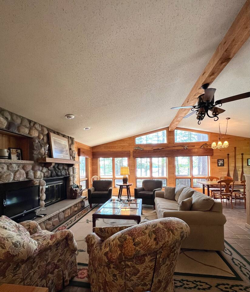 INSIDE There is a large open concept living, dining, and kitchen space boasting a wall of windows facing the lake outside. Just off the kitchen is a full bathroom and two bedrooms. On the other side of the home is the master suite with more surreal views of Alder Lake just outside, and another full bathroom with tub! OUTSIDE You will find a private dock, fishing boat, firepit, and various canoes, kayaks, etc. You will also find 4 bikes available for your use as well. And if you are looking for some adventures off the property, just minutes away, you can find many different bars, restaurants, parks and stores. Downtown Manitowish Waters is roughly 10 minutes away! There are also 50+ miles of bike trails that can be accessed just down the road. **All provided equipment is to be shared with the renters at the 2 bedroom home next door.** Next to the 3 bedroom home, is the 2 bedroom 1 bathroom home. That space has a full kitchen and living space. It also has its own firepit, private dock, and Alder Lake frontage. This space can be rented out with the 3 bedroom home or separately. Book one, OR both, today! We can't wait to see you at Alder Lake Rentals!