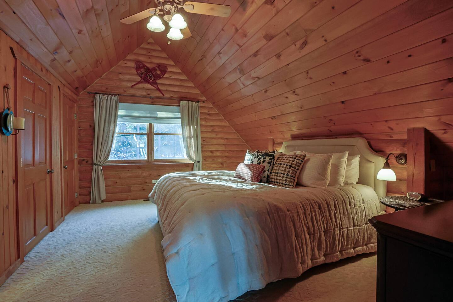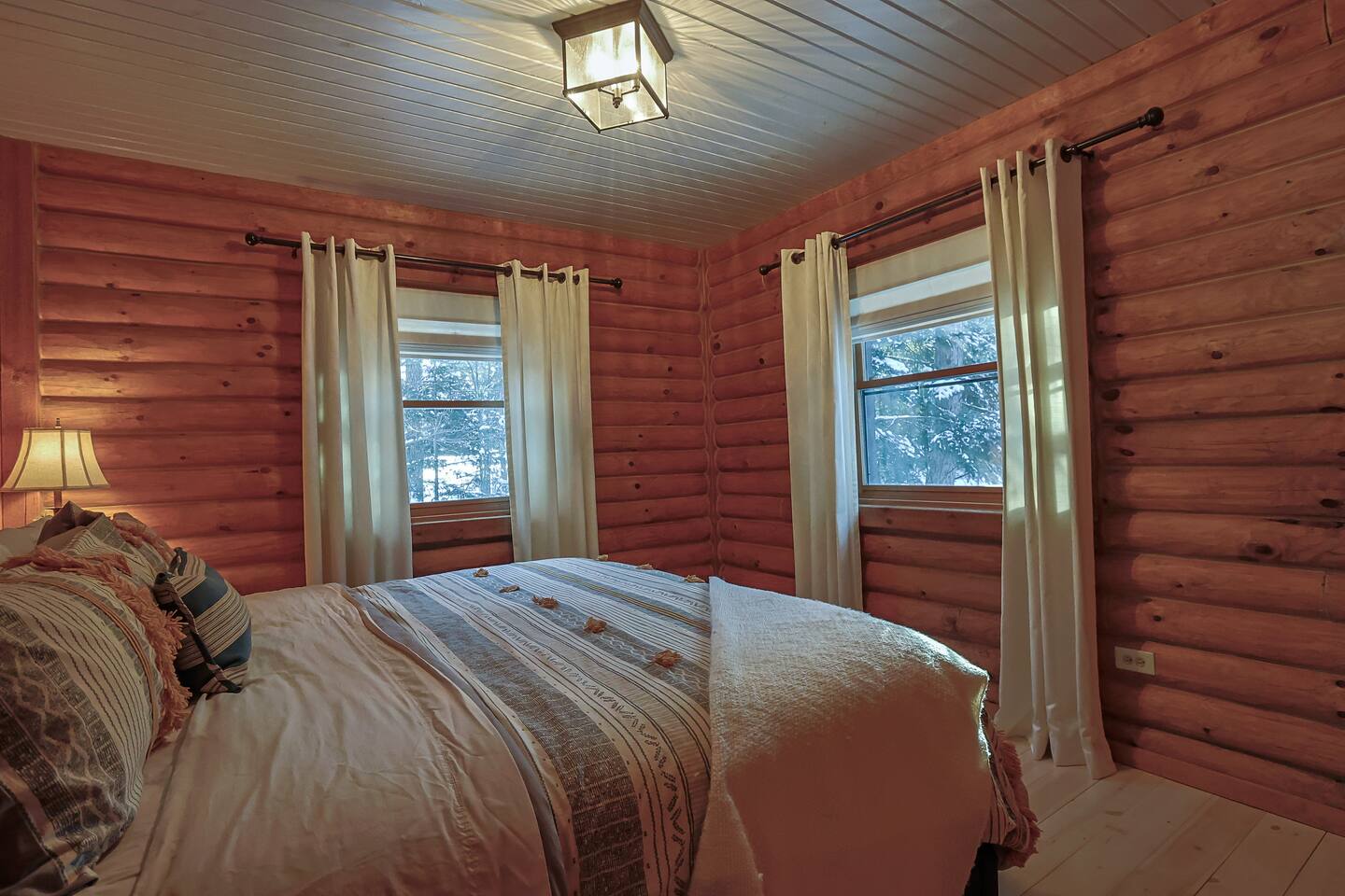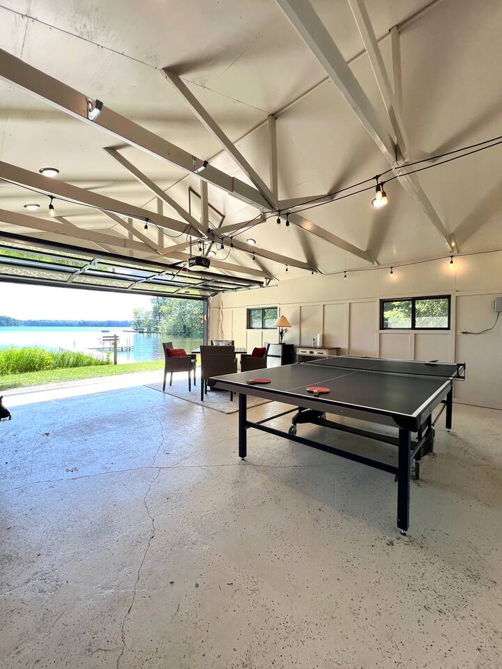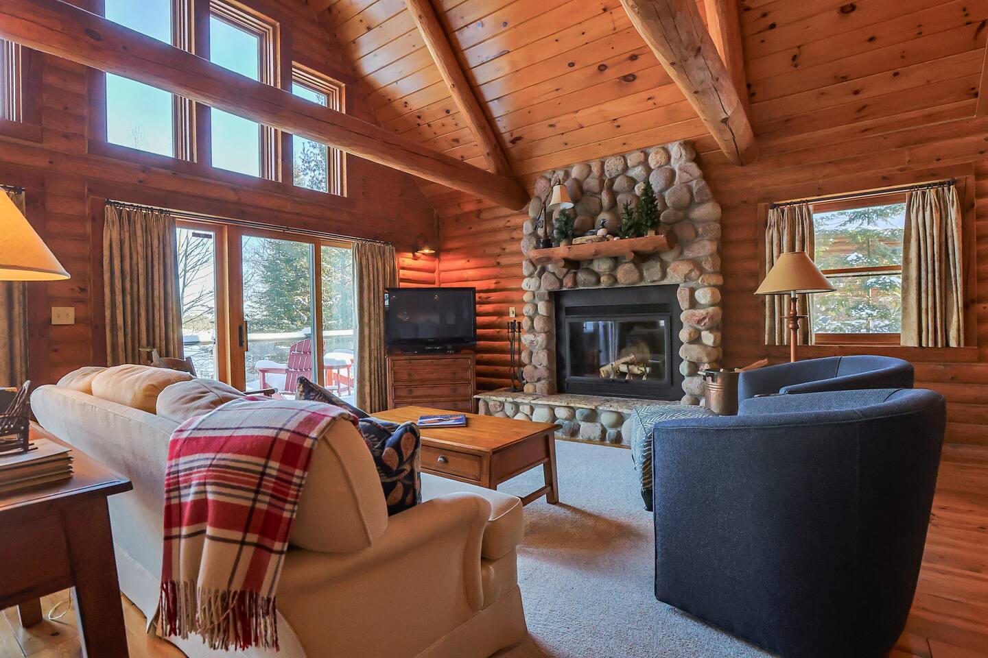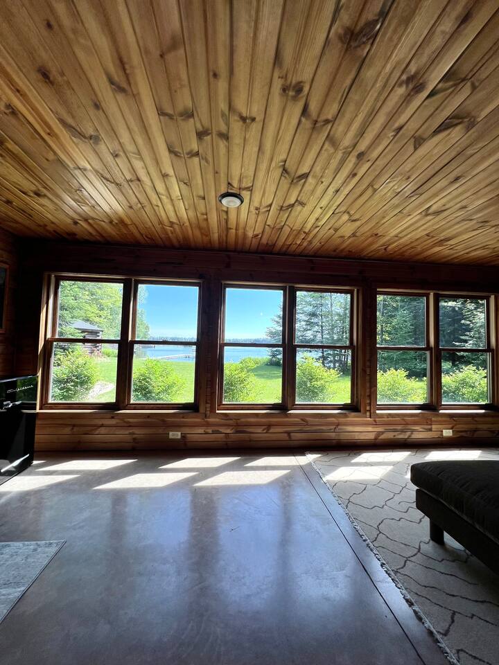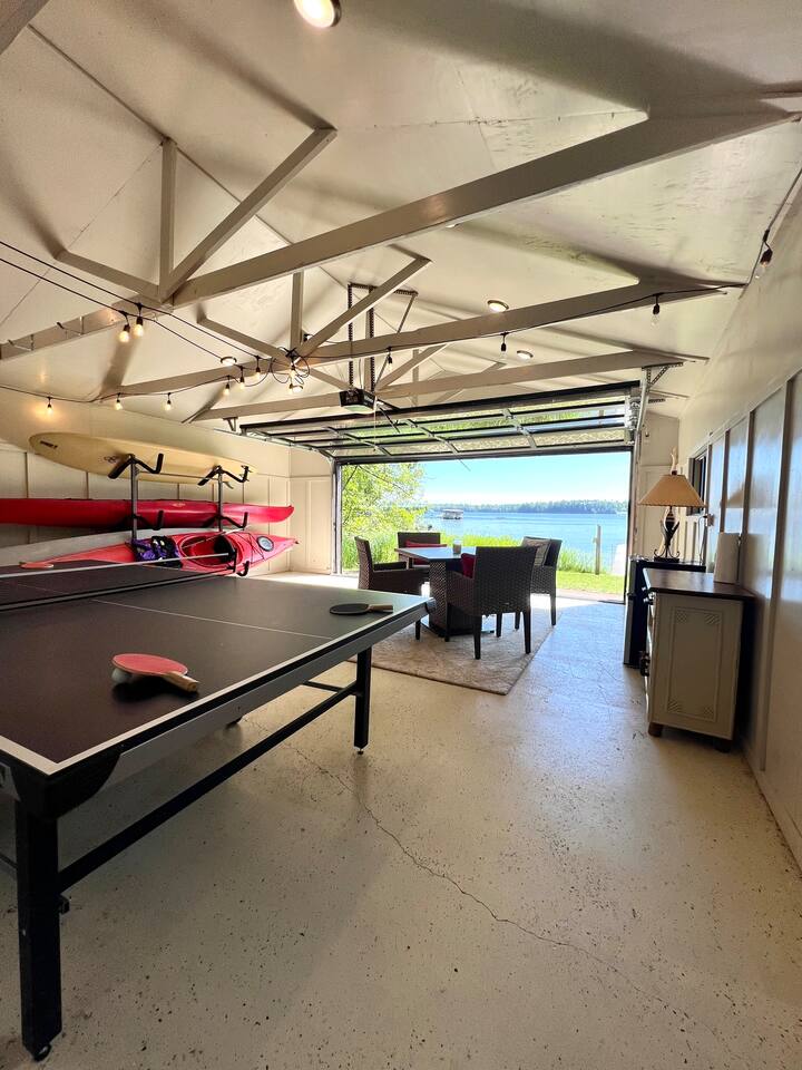 Rest Lake Retreat is one of the few places where you can capture serene woods and lake views, while being only seconds from restaurants, bars, grocery stores, and shops! Upon entering Rest Lake Retreat through the oversized mudroom, you will see high ceilings that showcase authentic log beams and a wall of windows facing the lake. In this main living area, there is a dining space, living room with a wood burning fireplace, and a kitchen with extra seating around the island. There are also two bedrooms and a full bathroom just down the hallway past the kitchen. The upstairs of this home holds the master suite. This lofted master suite has a sitting nook overlooking the main floor that boasts a stunning view of the lake, as well as a beautifully done full bathroom with shower. As you head downstairs, you will find another living space, additional bedroom, and a full bathroom. Attached to the downstairs, but separated off by a wall with glass door, is a fully finished, year-round, sitting area. This space offers you breathtaking views of the water, an enclosed office, and a door leading right to outside! Outside of Rest Lake Retreat, is a large lawn that leads right to Rest Lake. There is also a three-season dry boathouse that showcases it's proximity to the water through a glass garage door. Inside the boathouse is different seating options, and a ping-pong table. Just off the property, is access to miles of paved bike trails that can bring you to many bars, restaurants, and shops. For our winter guests, the snowmobile trail is just feet from the driveway, and there are many local cross country ski trails within minutes! We can't wait to have you at Rest Lake Retreat!