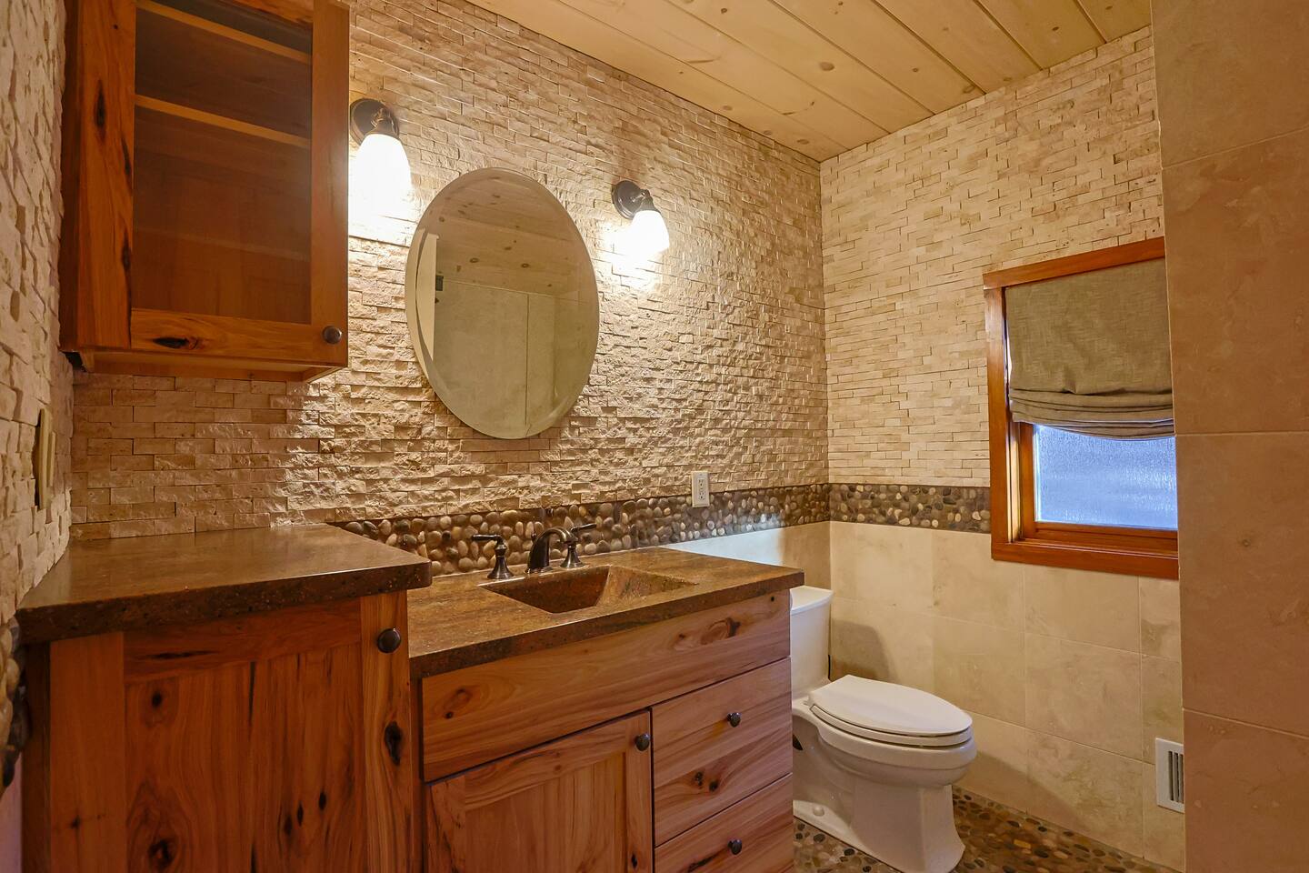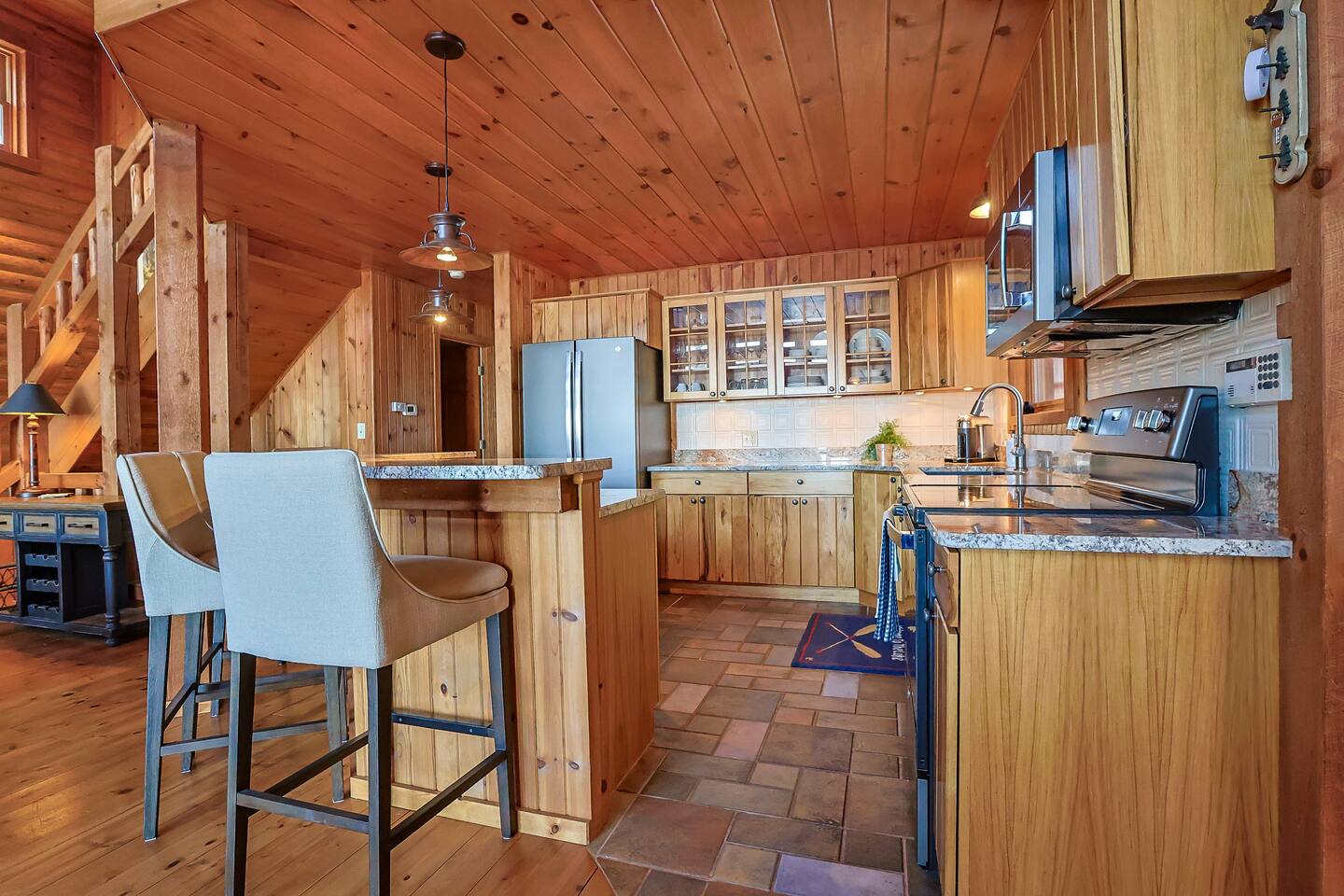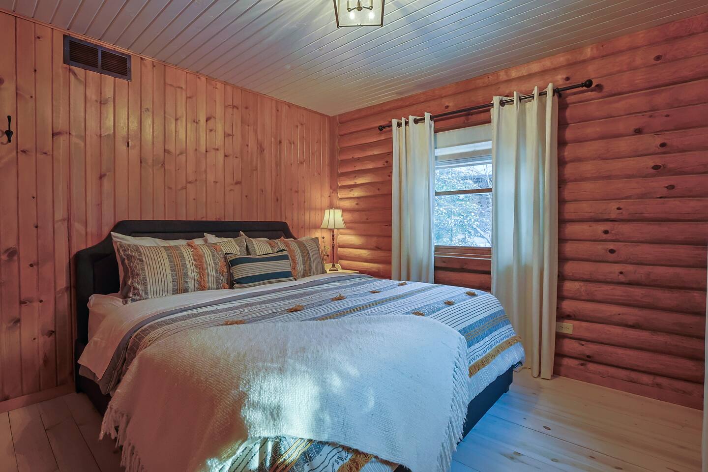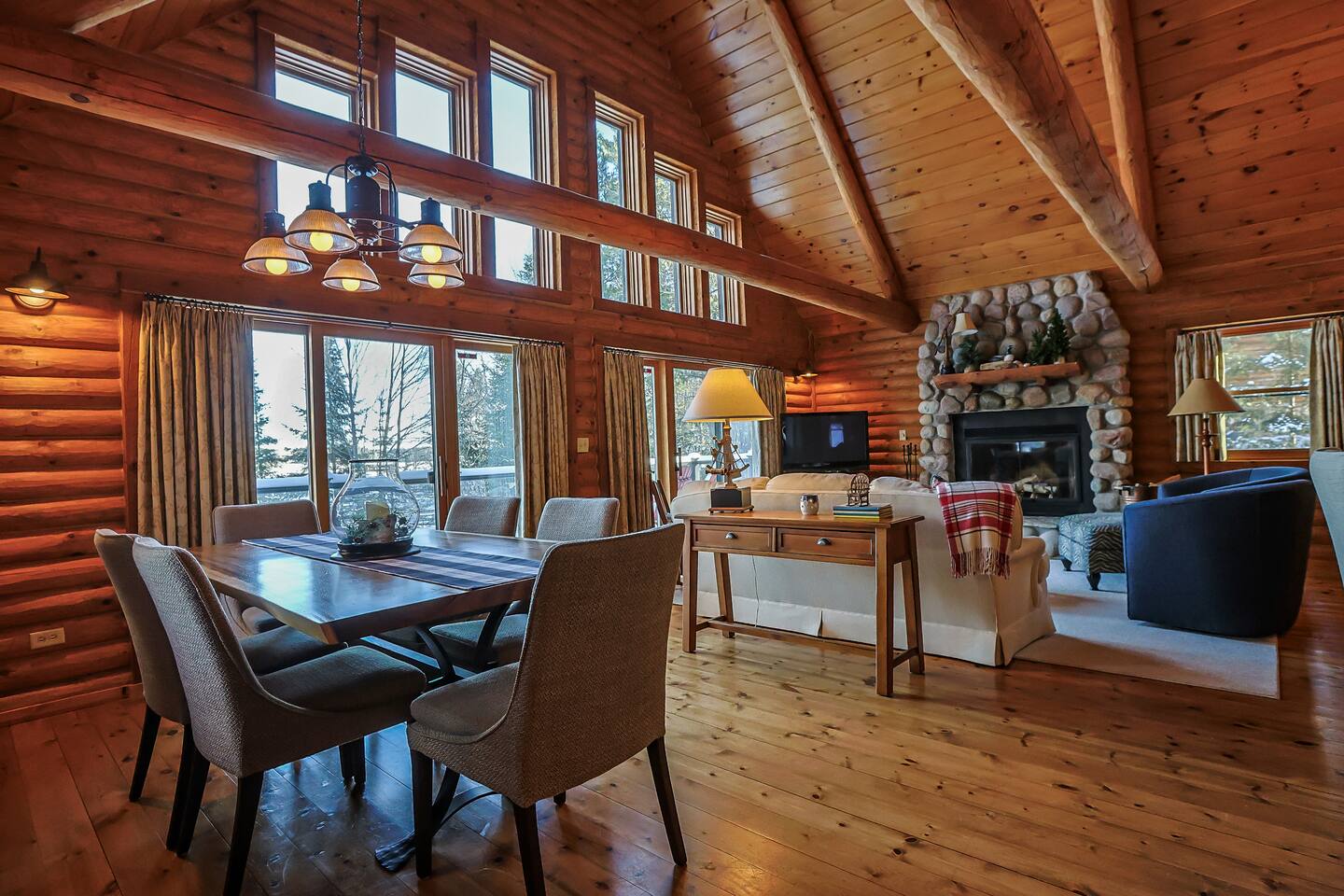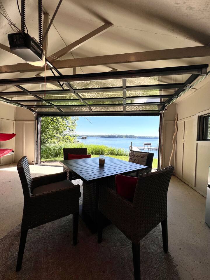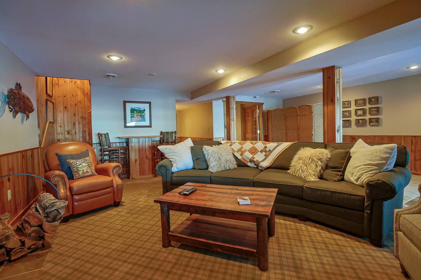 Rest Lake Retreat is one of the few places where you can capture serene woods and lake views, while being only seconds from restaurants, bars, grocery stores, and shops! Upon entering Rest Lake Retreat through the oversized mudroom, you will see high ceilings that showcase authentic log beams and a wall of windows facing the lake. In this main living area, there is a dining space, living room with a wood burning fireplace, and a kitchen with extra seating around the island. There are also two bedrooms and a full bathroom just down the hallway past the kitchen. The upstairs of this home holds the master suite. This lofted master suite has a sitting nook overlooking the main floor that boasts a stunning view of the lake, as well as a beautifully done full bathroom with shower. As you head downstairs, you will find another living space, additional bedroom, and a full bathroom. Attached to the downstairs, but separated off by a wall with glass door, is a fully finished, year-round, sitting area. This space offers you breathtaking views of the water, an enclosed office, and a door leading right to outside! Outside of Rest Lake Retreat, is a large lawn that leads right to Rest Lake. There is also a three-season dry boathouse that showcases it's proximity to the water through a glass garage door. Inside the boathouse is different seating options, and a ping-pong table. Just off the property, is access to miles of paved bike trails that can bring you to many bars, restaurants, and shops. For our winter guests, the snowmobile trail is just feet from the driveway, and there are many local cross country ski trails within minutes! We can't wait to have you at Rest Lake Retreat!