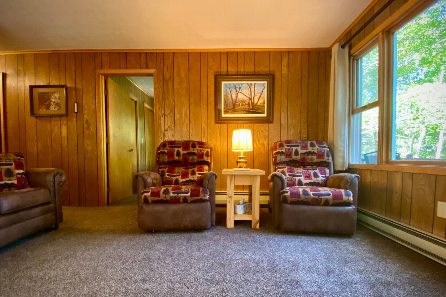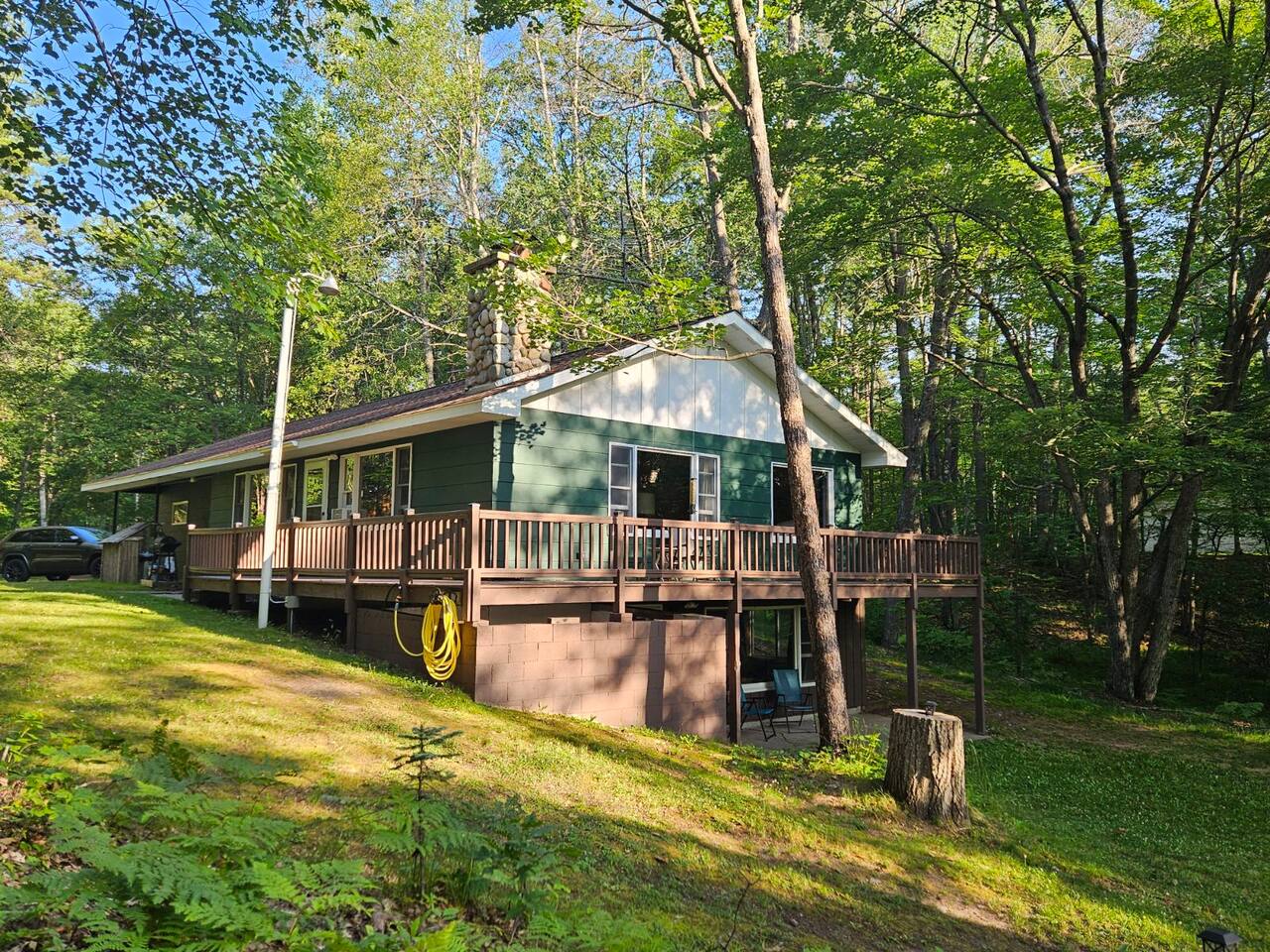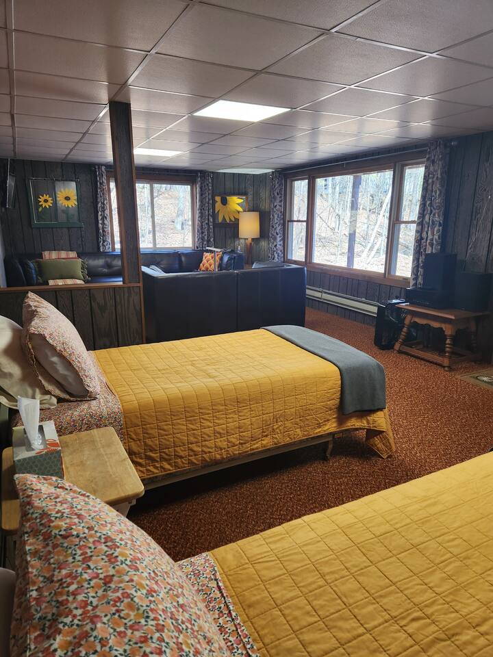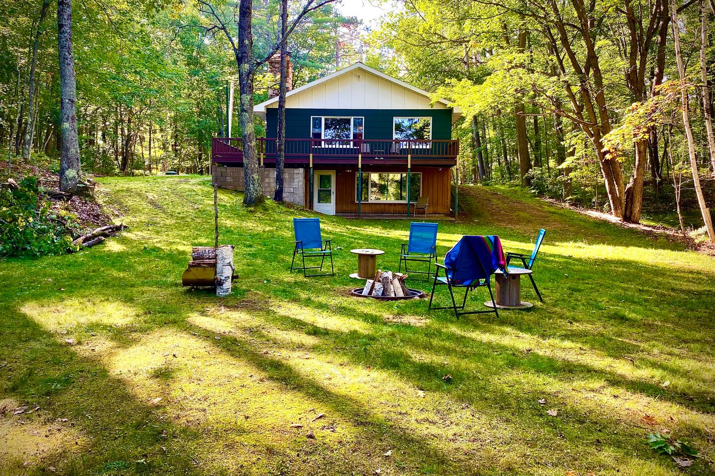 This home has it all and more to come! The main level boasts... - 1.5 bathrooms - 2 bedrooms - Full kitchen for guest use - Living room W/ wood burning fireplace! The finished basement includes... - Full bathroom - Washer/dryer - Additional living room - TWO twin beds in the common area - Door leading directly outside! ** There is also a full kitchen in the basement, but that is reserved for ONLY the homeowners** The oversized back yard is surrounded by large, mature hardwoods and borders the Manitowish River, and has DIRECT access to Boulder Lake! There is small non-motorized boat launch and private dock for guests to use. In the center of the yard, there is also a firepit to kick your feet up and relax in this wooded oasis! For our winter guests, we’ve added 4 sets of snowshoes to use during your stay! And for summer guests, we have 2 kayaks and a rowboat! Leave the bulky equipment at home and enjoy the water and woods without the hassle! The Manitowish River and Boulder Lake are locally known as Muskie country. Great fishing in the Northwoods can be found steps from the back yard. Launch your boat from the well-maintained public boat launch nearby, and then enjoy the luxury of docking on our private dock. If your passion is fishing, this is the house for you!