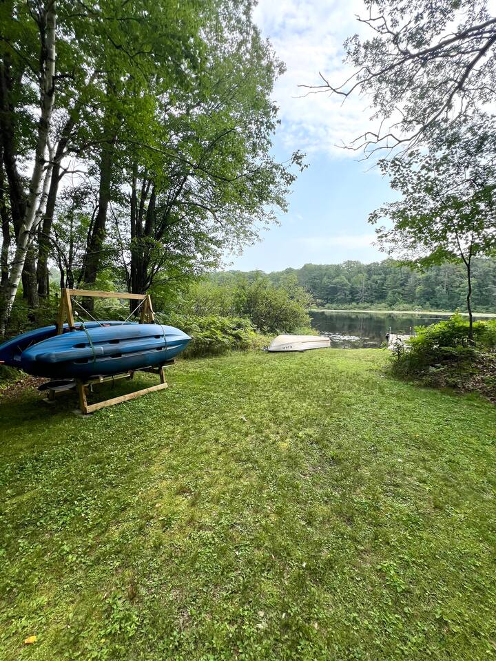 Private, peaceful and perfect for anglers and kayakers alike! This retro throwback offers a private dock and ultra easy canoe and kayak launch right in the back yard, with direct access to Boulder Lake! Large windows throughout the house provide lots of natural light, beautiful views of mature oak trees, wildlife and the waterfront. Snowmobile and bike trails are right outside your front door giving you endless opportunities to enjoy everything our beautiful Northwoods have to offer.